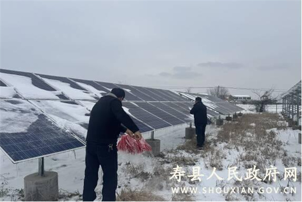 2026年1月19日至20日,寿县各地普降瑞雪,位于寿县中部的保义镇境内的树木、房屋等都银装素裹,地上也积满厚厚的积雪,与此同时,各村的扶贫项目光伏电板也被大雪覆盖,这严重影响了光伏设备的发电效率,为此,保义镇党委、政府组织各村及时清理光伏板上的积雪,保障光伏发电站的正常运行。