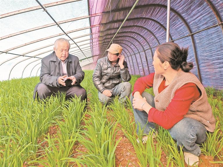 在张彦清家的韭菜大棚里,蒋儒龄找到了黄叶的症结:“水浇多了,地温上不来,根系受损。”他直接脱了外套,蹲在田垄间,用手刨开土层说:“韭菜这作物,看着泼辣,其实娇贵,要小水勤浇,不能大水漫灌。”